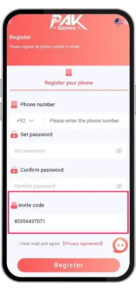 - Enter Your Invite Code: Use the Pakgame invite code: 85354437071 to boost your rewards. This code provides you with special offers and enhances your revenue.